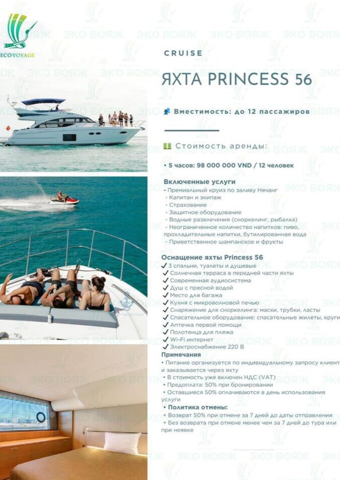 Аренда яхты в городе Нячанг "Princess yacht", предлагаем Вам отправиться на морскую прогулку, на борт доступно до 12 человек, время аренды 5 часов, бронируйте поездку заранее по телефону в ватсап +84792379555.